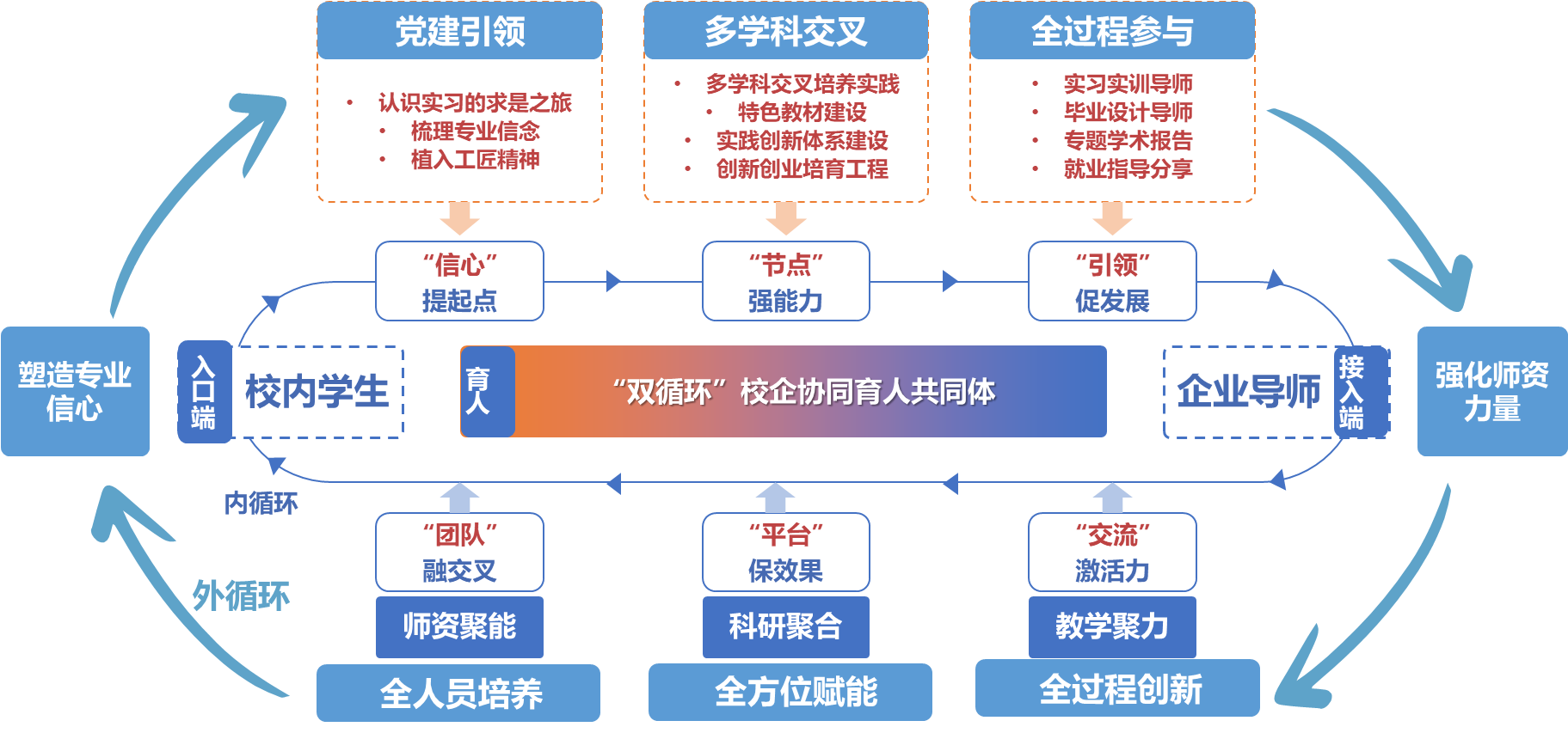 围绕创新性复合型工程人才培养模式的执行,构建理论教学、实践教学、创新教学以及第二课堂为基础的“四位一体”的培养平台,构建了“思政育人、特色育人以及创新育人”三个精细化育人模块,有针对性的培养人才的“家国情怀、能源特质、精英素养三个核心素质,建成课程思政示范课建设18门,其中11门课程获得校级优秀思政示范课。与国家能源集团、矿冶科技集团等央企加强校企合作,建成了23个高质量“科技矿场”实践基地,实现学院四个专业全链条覆盖;聘请科技矿场企业导师83名,邀请企业导师进校讲授《大学生就业指导》课程、开设讲座、指导大学生创新训练项目等,同时企业还为学院设立了专业奖学金,构建了学校+企业“双元”育人主体;探索了“立德树人、校研党建、产学融合”的实践教学改革,构建了以“科技矿场”为依托的“党建+实践”科教融合育人新模式,充分发挥了党建在校企科教融合育人模式中的引领作用,让青年人才培养工作既“专”又“红”。
