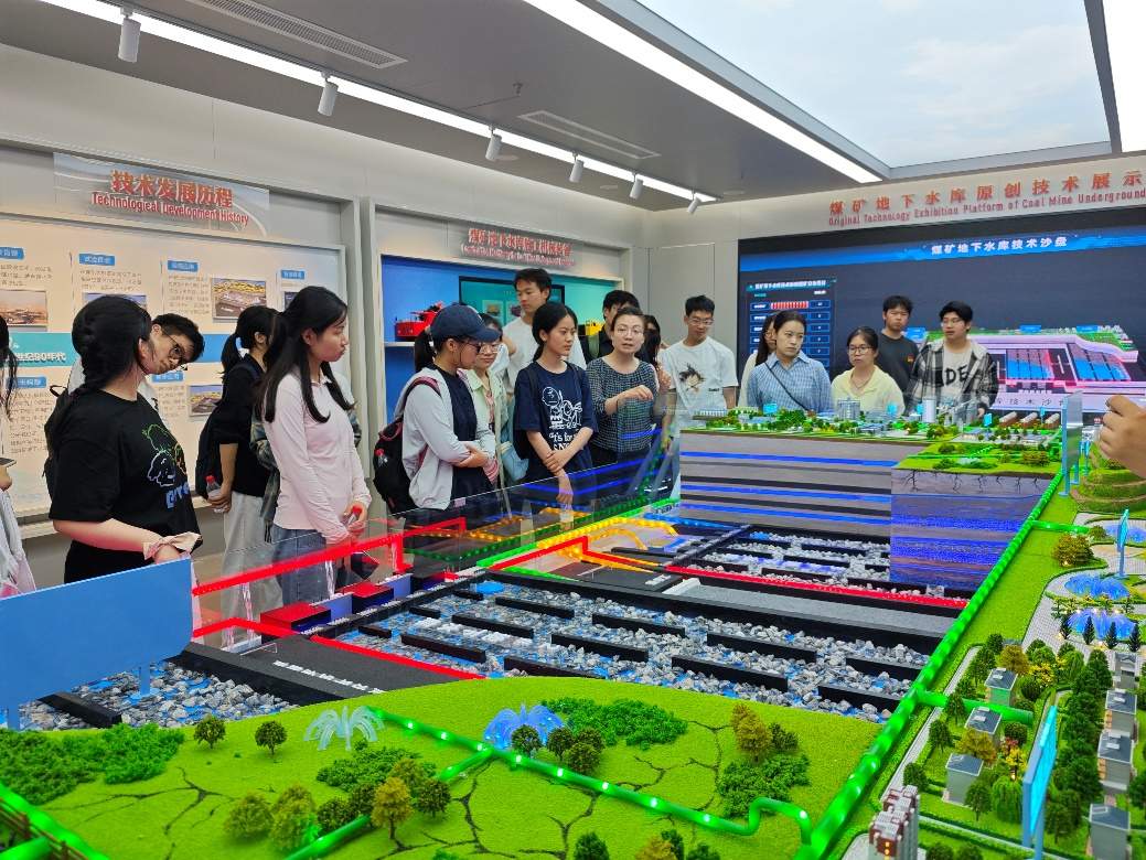 在工作人员的带领下,我院师生首先参观了低碳院基地展廊、煤炭开采水资源保护与利用全国重点实验室和煤矿地下水库技术展厅,深入了解煤炭地下水库的建设原理、运行机制与安全保障体系,同学们对煤炭绿色开采前沿技术表现出浓厚的兴趣。在交流座谈环节,低碳院首席科学家钟振成介绍了研究院的方向及成果,毕业于中国矿业大学(北京)的工作人员向同学们分享了他们在低碳院和国重实验室的成长历程和宝贵经验,为学生的专业拓展与职业规划指明了方向。