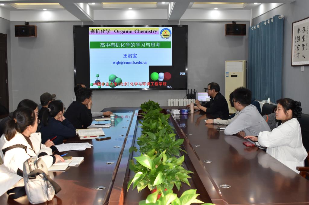 座谈会上,北京市教学名师王启宝教授与油田一中的化学教研组老师们,就高中有机化学的教学与迎考进行了深入的交流。同时,向学校赠送了他领衔主编的《有机化学》教材(该教材荣获石油和化工行业“十四五”规划教材)及配套习题指导。随后,双方郑重签署了合作协议书,并共同为“中国矿业大学(北京)优质生源基地”揭牌,标志着两校合作迈入新的篇章。