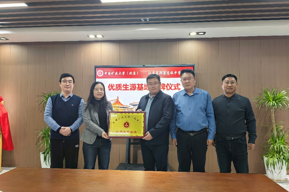 随后,刁琰琰教授和副主任涂亚楠副教授与郑集中学的校领导进行了座谈交流,双方签署了合作协议书,并共同为“中国矿业大学(北京)优质生源基地”揭牌。