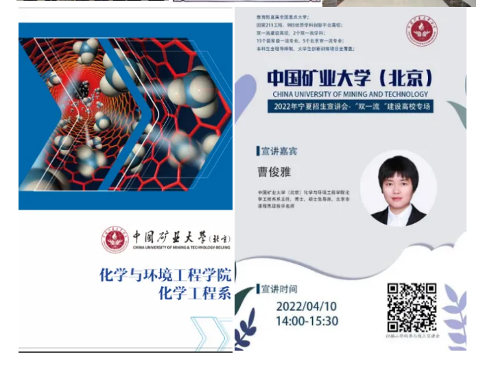 为扩大学校化工专业的影响力和招生宣传工作,2022年,组织全系师生录制完成了化工专业宣传视频,并在“高招宝平台”针对宁夏、山西地区开展我校的招生宣讲工作。为提高产学研合作和学生就业,她申报并获批了教育部产学合作协同育人项目3项,教育部供需对接就业育人项目3项。联系建设中科院过程所、航天长征化学工程公司等研究生专业实践基地;万华化学、低碳院等“科技矿场”;获校就业创业工作先进个人。