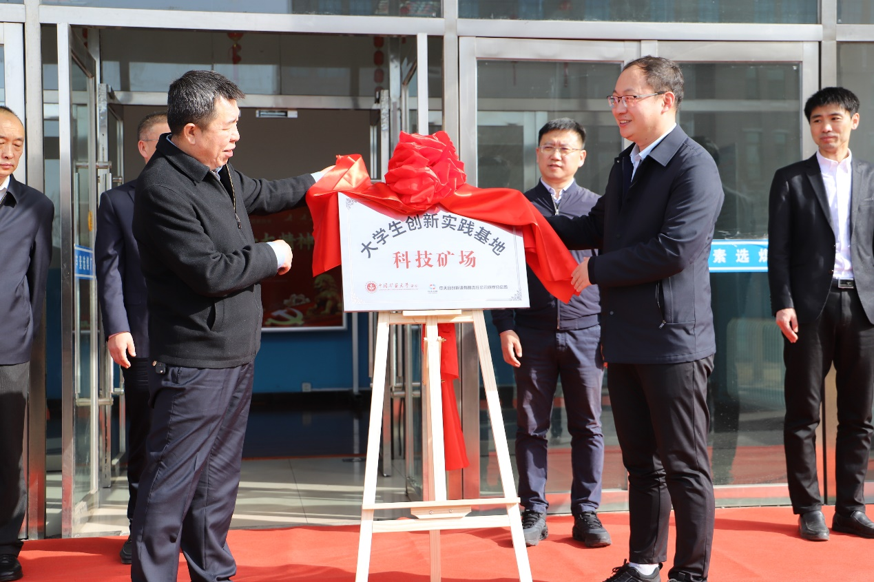 随后,孙志明与中天合创煤炭分公司副总经理周剑共同为大学生创新实践基地-科技矿场揭牌。中国矿业大学(北京)与中天合创煤炭分公司共建的科技矿场是双方经过充分协商,以党建为引领,旨在充分整合双方资源为大学生创新实践、实习就业、人才培养、科学研究等多个方面互融互通、赋能增效。