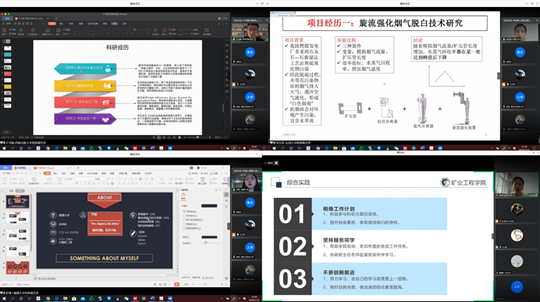 712日上午1000,夏令营全体成员利用腾讯会议在线参加了矿加系精心安排的学术系列讲座,潘永泰教授、王卫东教授、邓久帅教授和孙志明教授分别从矿物加工机械、智能矿物加工、金属矿加工和矿物材料四个方面介绍了矿物加工系学科方向,开阔了同学们的视野,让同学们了解到矿物加工工程专业除了传统选煤、选矿的工艺与基础理论研究方向之外,还有高大上的智能分选机器人、图像识别技术、音频故障预警、电子垃圾解离分离、固废全资源化、金属矿深加工以及矿物材料等高大上的研究方向。学术报告后夏令营的同学与各位教授在线进行了深入的交流探讨,各位老师从研究方向、项目成果、培养计划到实验室生活等方面给出了详细回答,解答了同学们的疑惑。
