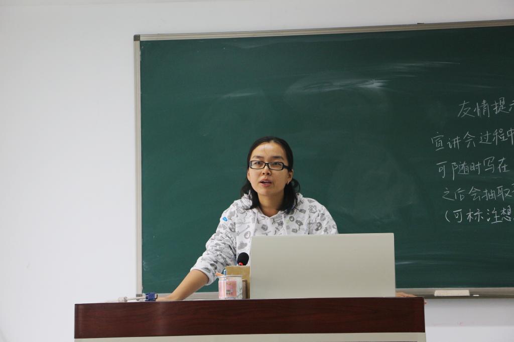 【本网讯】10月10日下午,化学与环境工程学院在逸夫楼717举办留学政策宣讲会。学院党委副书记姜骑山出席宣讲会并主持会议,国际合作与交流处柴婷老师、矿加系副教授徐宏祥、矿加系封萍老师、应用化学系副教授袁宁受邀出席会议,学院辅导员廖泱泱、孙文文,以及化环学院相关学生共120余人参加宣讲会。