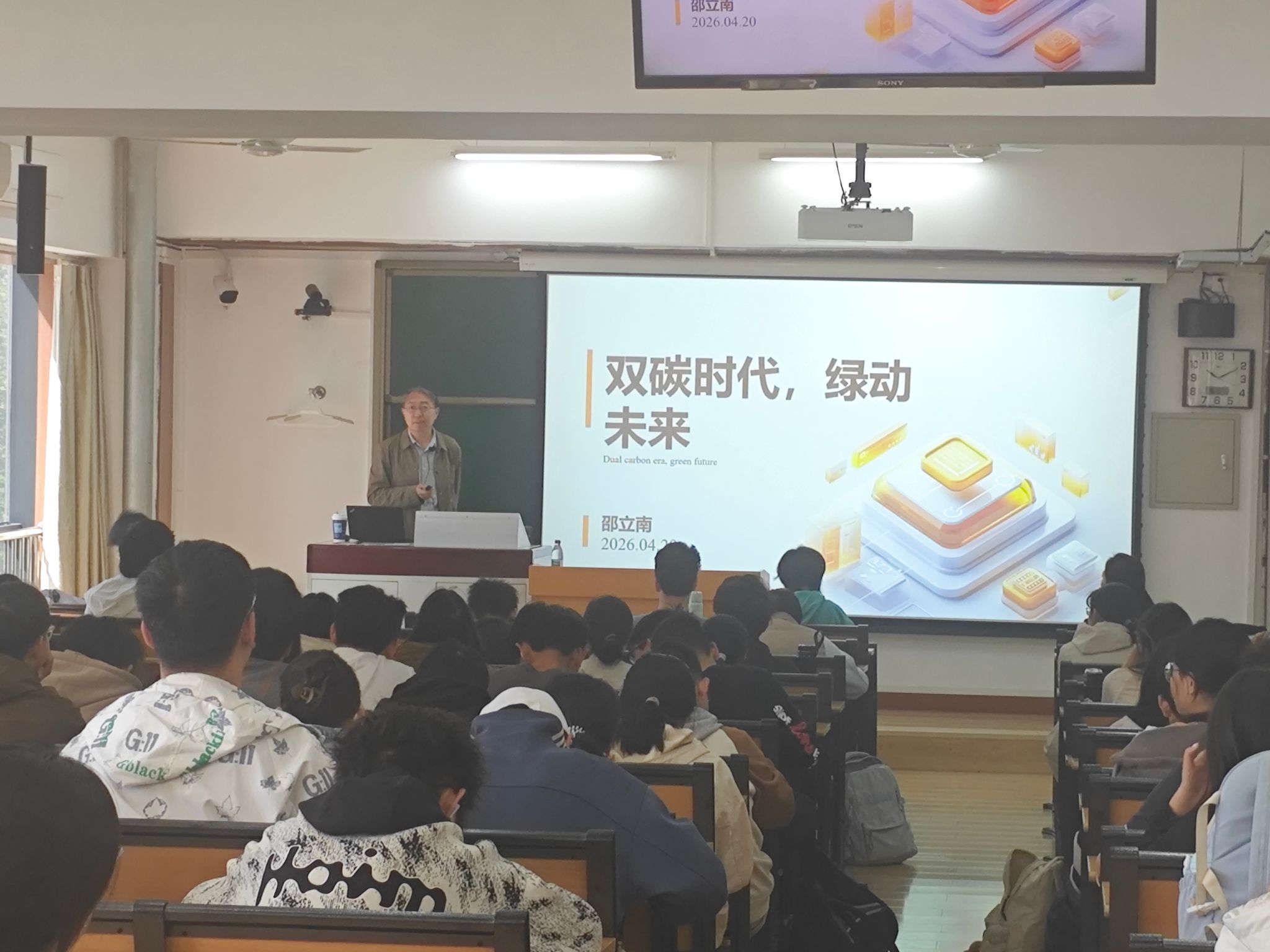 讲座中,邵立南紧扣双碳战略时代背景,结合两大专业学科特色与行业发展趋势,系统解读国家双碳相关政策,全面梳理专业对应的职业发展领域全景图,详细拆解技术研发、工程应用、政策咨询、行业管理等多元职业路径与发展方向。他立足行业前沿,深入分析 AI 技术在环境治理、碳储存与利用等领域的应用场景及新兴职业机遇,并结合大一学生成长特点,从专业学习、实践积累、目标规划等方面给出针对性建议,为学子搭建起专业学习与职业发展的衔接桥梁。