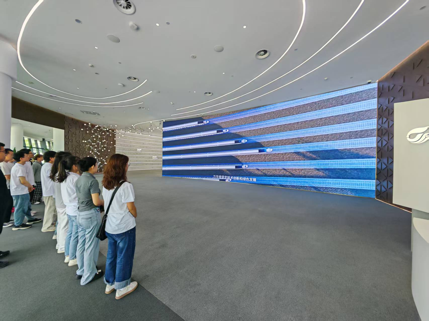 在“科技矿场”万华化学主要参观了展示中心、科技文化长廊,同时前往了万华大学。在集团人力资源部招聘专员曾霈浠的带领下,他们近距离接触3D打印技术、新型复合材料等新技术先进成果,了解化学聚氨酯产业从基础研究到产品应用的全流程,交流实践经验,感受校企文化,传播创新理念。深入了解了万华化学从烟台合成革厂发展成为全球化材料巨头的历程,感受其在技术突破、产业升级道路上的不懈努力。