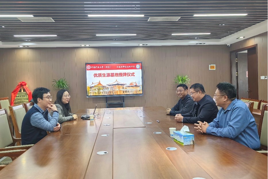随后,刁琰琰教授和副主任涂亚楠副教授与郑集中学的校领导进行了座谈交流,双方签署了合作协议书,并共同为“中国矿业大学(北京)优质生源基地”揭牌。