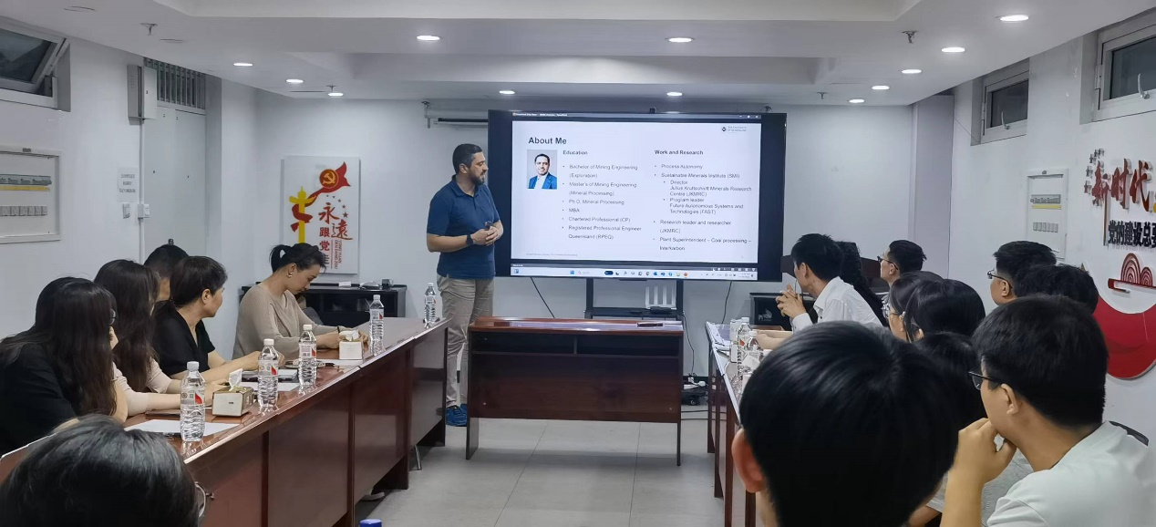 为进一步提升国际化教育水平,营造良好的学术交流氛围,2024614日,应邓久帅教授邀请,澳大利亚昆士兰大学JK矿物研究中心主任Mohsen Yahyaei教授来校开展学术交流,在逸夫楼309会议室为师生作了题为“Navigating Mining Automation in Practice”的学术讲座。化环学院解维伟副教授和矿加系主任徐宏祥副教授主持活动。