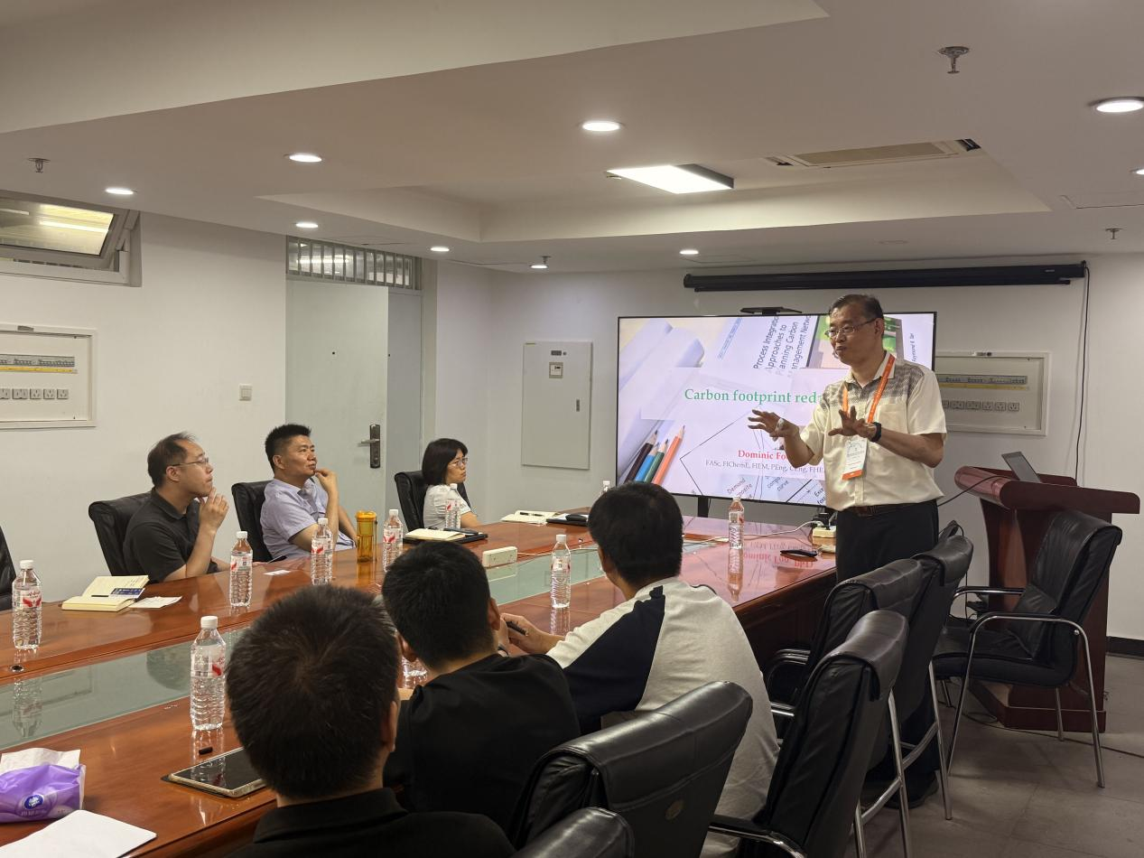 2025年7月14日上午,应化学工程系盖恒军、曹俊雅教授的邀请,马来西亚科学院院士、《Process Integration and Optimization for Sustainability》期刊的主编、英国诺丁汉大学马来西亚分校Dominic Foo教授在逸夫楼412会议室作题为”Process Integration for Carbon Footprint Reduction in Achieving Carbon Neutrality”的学术报告,报告会由曹俊雅教授主持,化工系30余名老师、研究生参加。