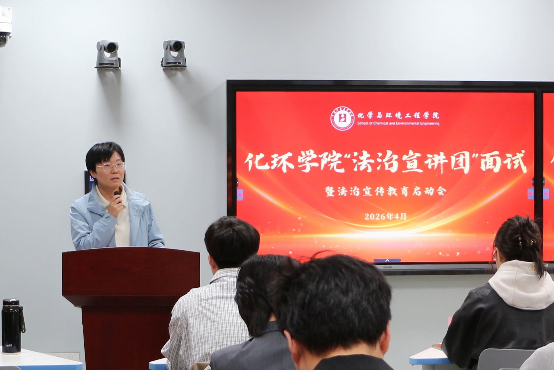 为扎实开展法治教育,提升青年法治意识,2026年4月7日19:00,化学与环境工程学院“法治宣讲团”选拔面试于沙教1-304顺利举行。本次面试特邀文法学院副教授、法学系副主任朱梦妮、化环学院党委副书记尹娟,以及各年级辅导员老师担任评审嘉宾,此次面试选拔由要洋洋主持。