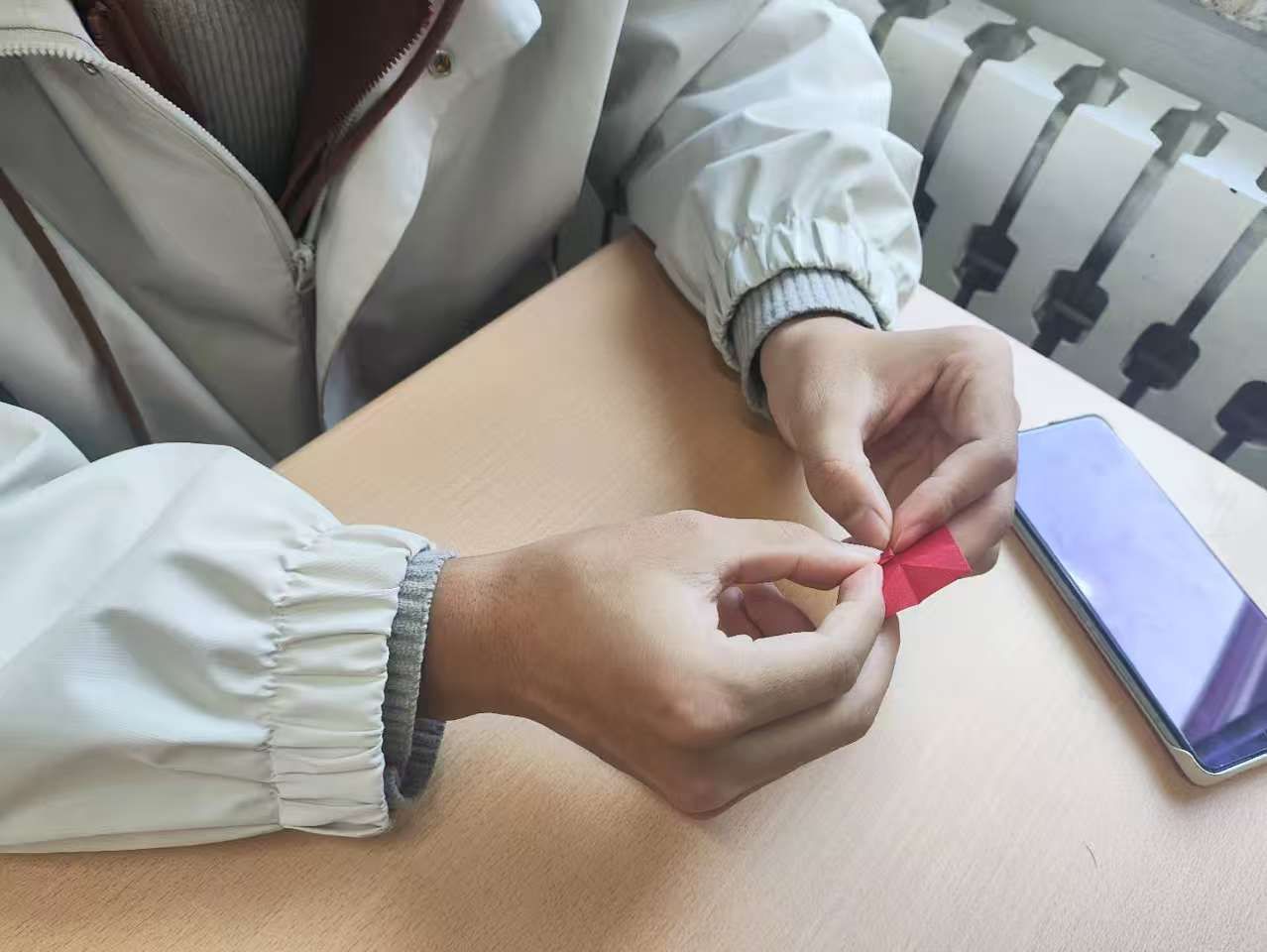 环工23-3班围绕“筑梦·初心如磐”“逐梦·指尖匠心”“圆梦·展翅高飞”三个篇章展开,同学们认真学习习近平总书记对青年的寄语,在彩纸上书写小目标与未来承诺,亲手折叠千纸鹤,活动在零食分享与折纸交流中落幕。