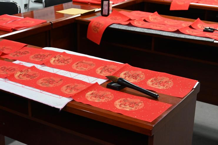 文意互通纸势亮,神韵相契墨香长。老师们轻握毛笔, 墨香四溢, 笔下生风, 一撇一捺中,写下了对于新岁的无限期许!