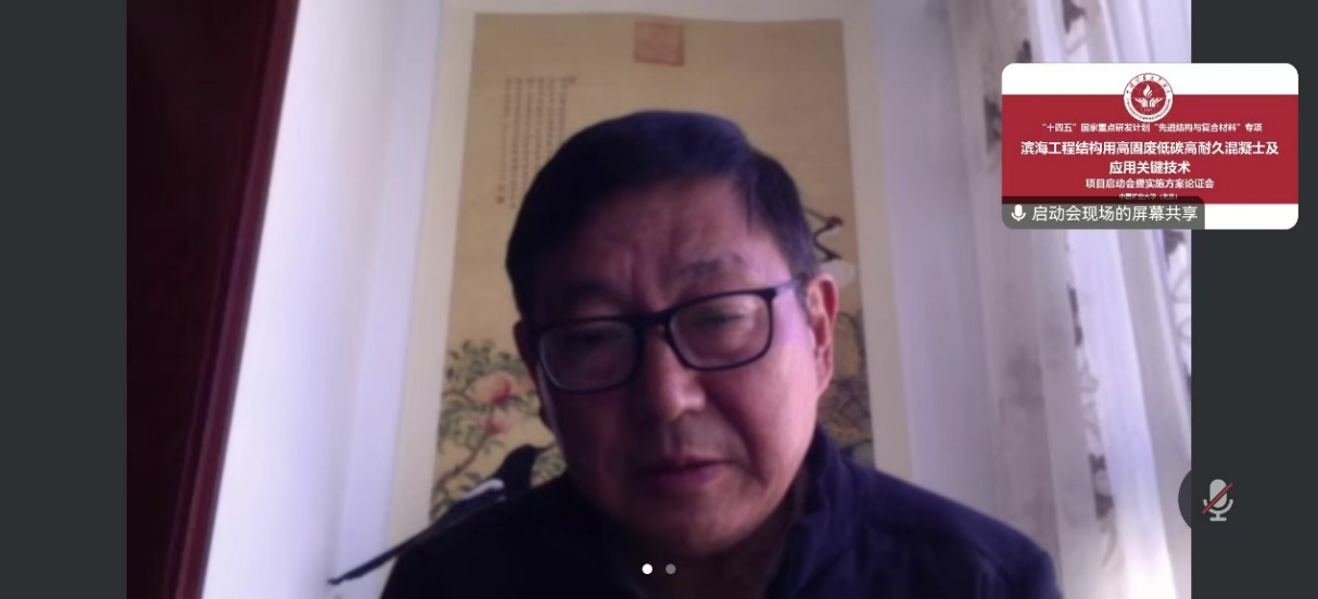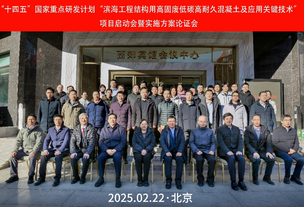 2月22日,由中国矿业大学(北京)牵头,深圳大学、中建西部建设建材科学研究院有限公司、重庆大学、中建海龙科技有限公司、上海百奥恒新材料有限公司、浙江大学、中交天津港湾工程研究院有限公司共同参与,中国矿业大学(北京)化学与环境工程学院化学工程系王栋民教授作为项目负责人的“十四五”国家重点研发计划“滨海工程结构用高固废低碳高耐久混凝土及应用关键技术”项目在北京西郊宾馆召开了项目启动会暨实施方案论证会。会议采用现场会议与视频会议相结合的方式举行。