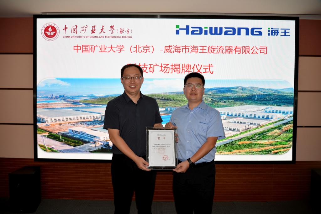 6月26日上午,学院副院长(主持工作)邓久帅等一行来到威海市海王旋流器有限公司(以下简称“海王公司”)调研走访,为张星、葛家军、张光伟、公绪文颁发企业导师证书,并举行了“科技矿场”授牌仪式。