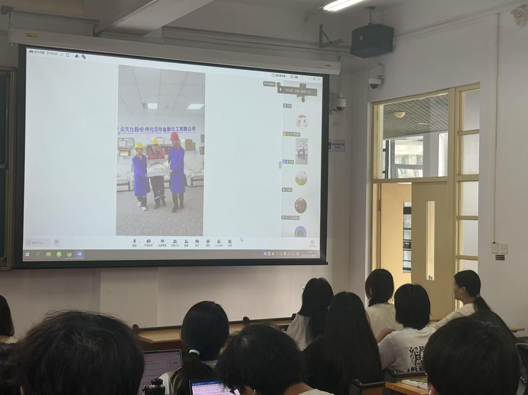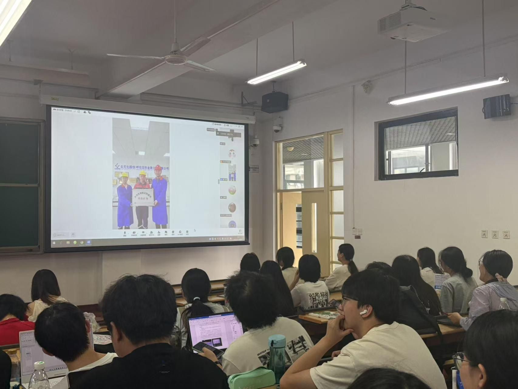 7月2日,张萌老师赴我校科技矿场-呼伦贝尔金新化工有限公司,与现场技术人员一起以线上直播的形式,为本科生举办了一场内容充实、形式新颖的线上“云”实习。技术人员生动地介绍了企业的生产工艺、设备类型、关键技术等情况,学生和直播教师、工程师实时互动,对金新化工采用的先进污水处理技术、烟气脱硫脱硝技术、固体废弃物处理与处置技术,以及东明矿业采用的先进生态修复及绿色生产技术,进行了深入了解。