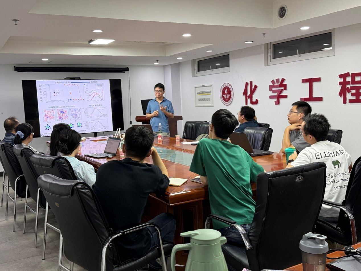 2025年8月29日上午,应化学工程系孙春文教授的邀请,国家高层次青年人才松山湖材料实验室研究员,数据驱动材料科学研究组负责人胡远超教授在逸夫楼412会议室作题为”How to bridge battery design with glass physics?”的学术报告,报告会由孙春文教授主持,化工系20余名老师、研究生参加。