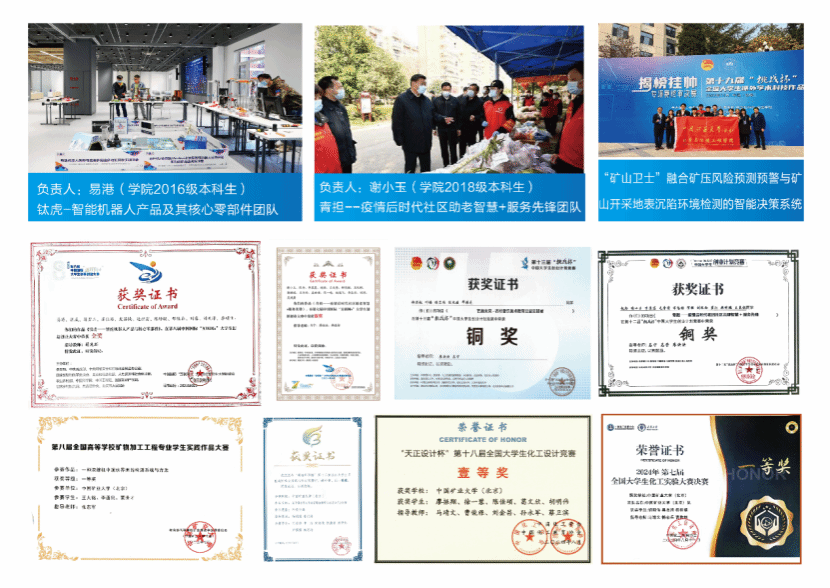 “十四五”期间,学院在煤炭清洁高效利用全产业链教育领域新工科建设、学科交叉、思政育人、国际化培养等方面最新成果获得2024年度全国煤炭行业教学成果奖10项,包括特等奖1项、一等奖1项、二等奖2项,获奖等级与数量均创学院历史新高。同时,建立了专业及创新实验室的自动预约和智能管控系统,实现了实验室全面预约开放,实验过程、试验设备及实验环境的智能监控和绩效动态评估,为不同专业和学科的学生在同一平台开展实践和实验提供了坚实保障;深度融合“云”技术和人工智能技术,构建并实施了以学生为中心、以培养创新型工程人才为目标、以任务驱动和过程管控为导向的煤炭清洁利用创新人才培养过程的管控体系。《深度融合“云”技术的矿物加工工程专业创新人才培养过程管控体系构建与实施》教学改革成果获中国有色金属学会高等教育教学成果奖一等奖。