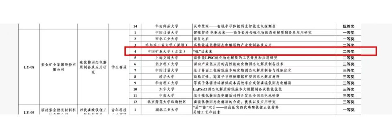 由刘瑞平、马宁老师指导,李傲、王晓东等同学完成的参赛项目《“硫”动未来》通过材料设计与工艺研发的协同创新,成功开发出了一系列的可适配不同应用场景的性能可控、粒径可调的硫化物固态电解质,为构建下一代安全可靠、高性能的全固态电池奠定了坚实基础,荣获大赛二等奖(未设擂主和特等奖)。