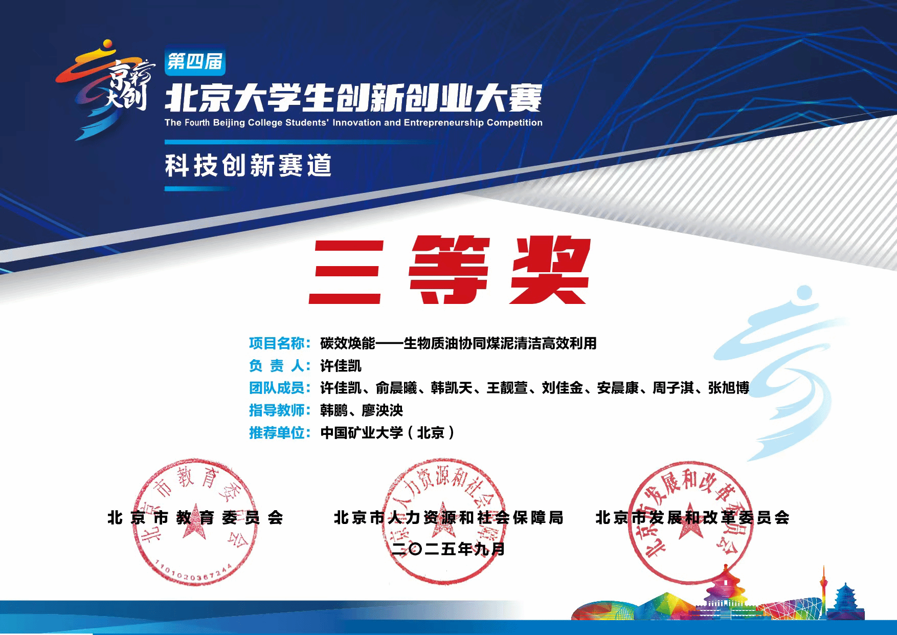 近日,2025年度第四届“京彩大创”北京大学生创新创业大赛圆满落幕,我院参赛团队表现优异,共获一等奖1项、二等奖1项、三等奖4项。