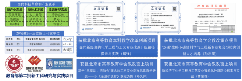 搭建了多学科交叉的教学科研团队,组建了煤炭清洁高效利用基层教学组织,获批北京市教学名师2人,教育部青年长江学者2人,全国煤炭行业优秀教学团队1个,全国化工行业优秀教学团队1个,北京市高等学校优秀教学实验室1个,北京市高校优秀本科实验指导教师1人,北京市优秀本科课程4门,北京市高校优质本科课件2门,北京市高校优质本科教材2本;获批教育部新工科项目1项,教育部产学研合作协同育人项目8项,教育部供需对接就业育人项目4项,北京市教改项目2项,北京市高等教育学会教改重点项目1项,全国煤炭行业协会教改重点项目1项。