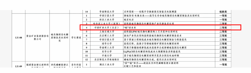 由刘瑞平、马宁老师指导,李傲、王晓东等同学完成的参赛项目《“硫”动未来》通过材料设计与工艺研发的协同创新,成功开发出了一系列的可适配不同应用场景的性能可控、粒径可调的硫化物固态电解质,为构建下一代安全可靠、高性能的全固态电池奠定了坚实基础,荣获大赛二等奖(未设擂主和特等奖)。
